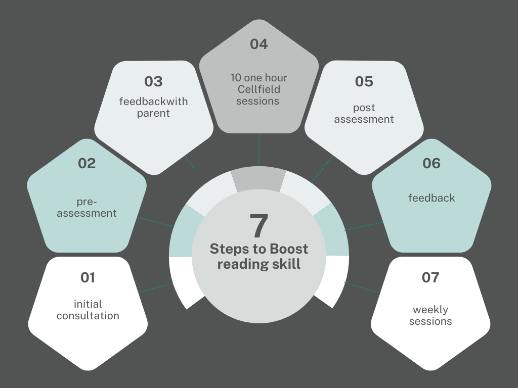 Post-Cellfield sessions: 10 – 12 weekly sessions ensure integration of new skills into everyday reading.